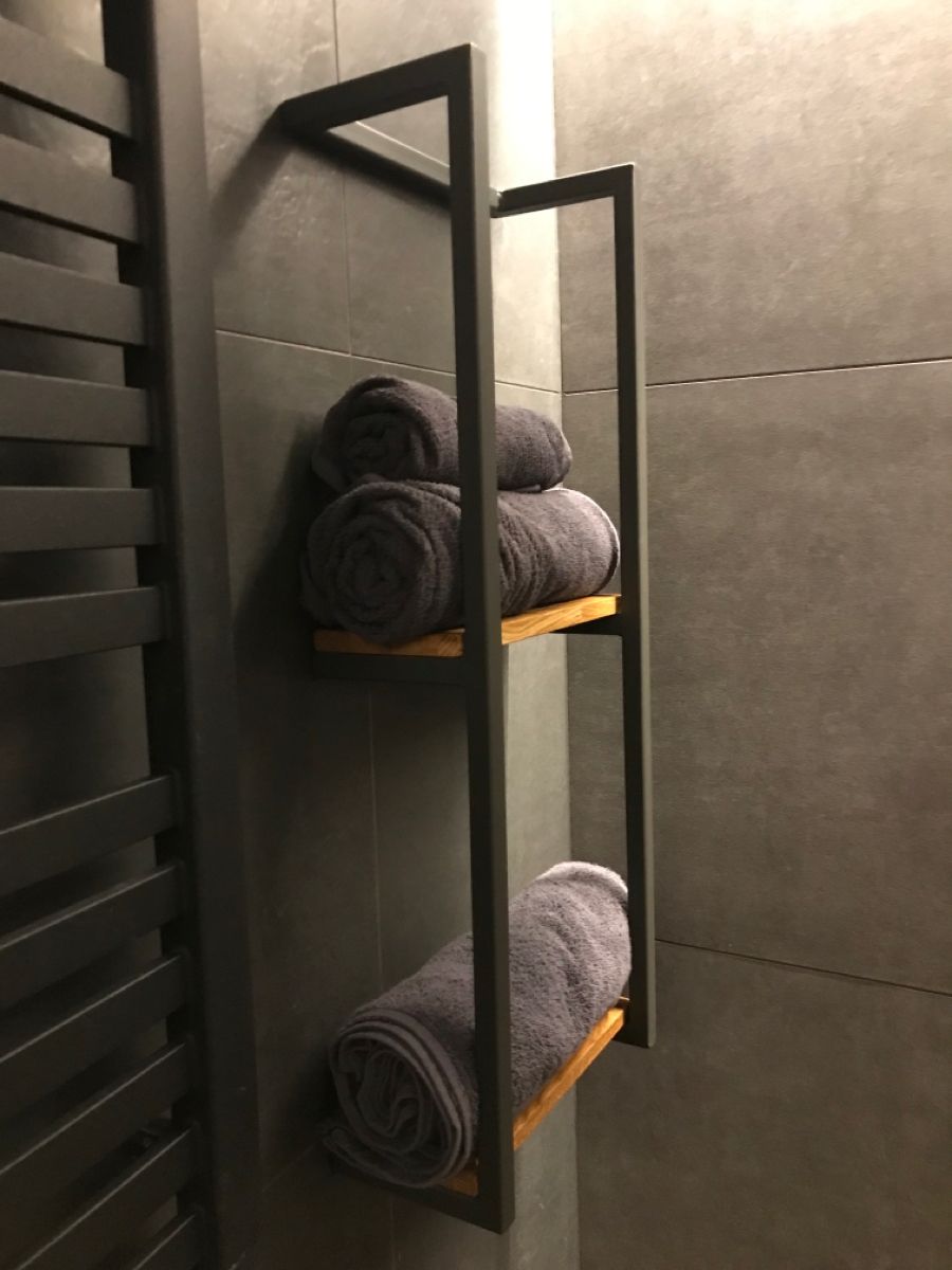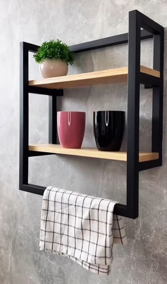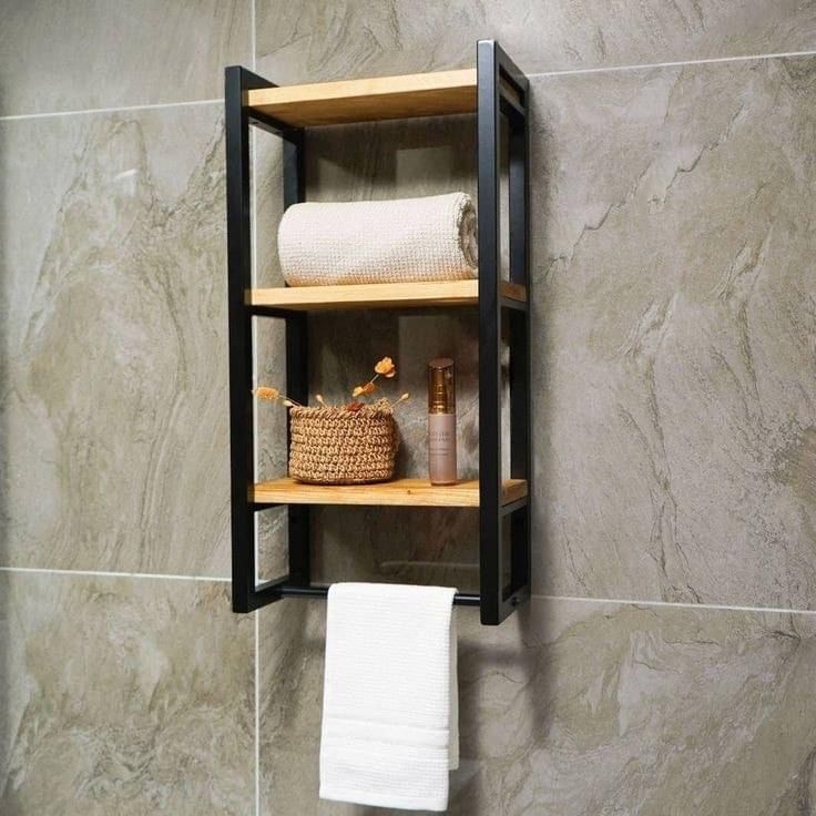 Toalheiro Industrial com Prateleiras – Metalon + Madeira Pinus