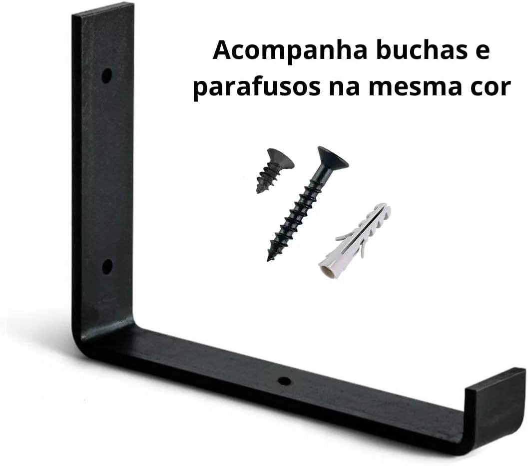 A estrutura de suporte é feita em aço carbono com pintura eletrostática preta, garantindo estabilidade e estilo industrial autêntico. A instalação é simples e segura, com suportes metálicos prontos para fixação em parede de alvenaria.